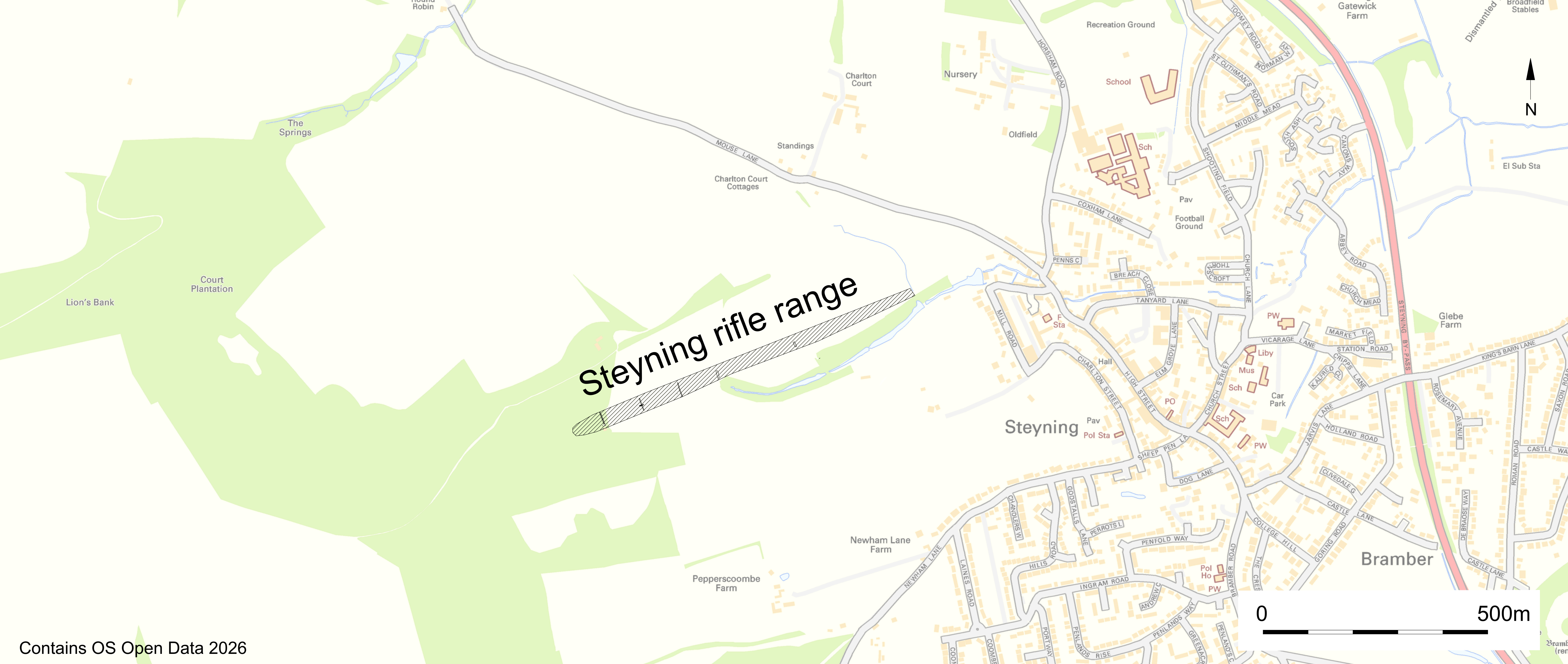 Map showing the rifle range in relation to Steyning.