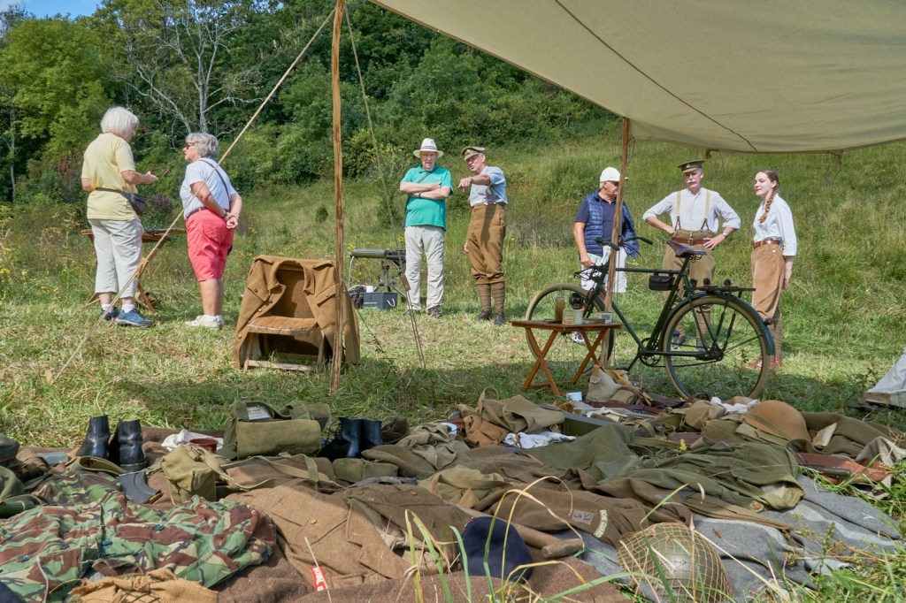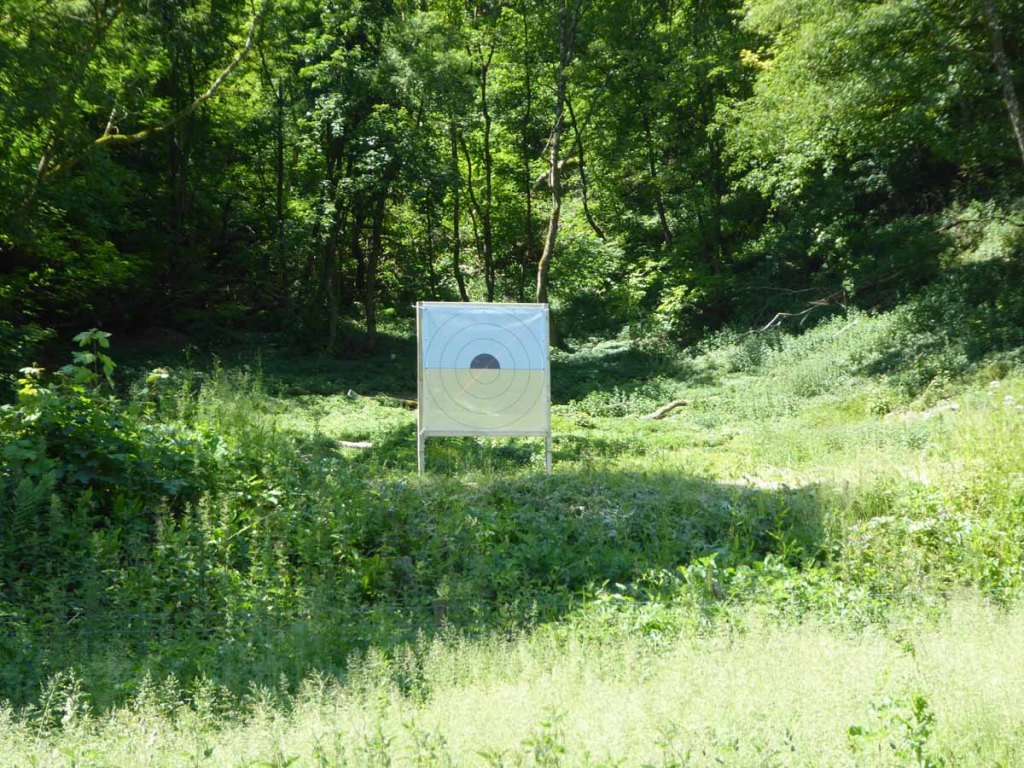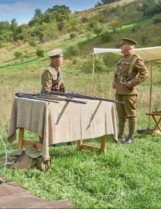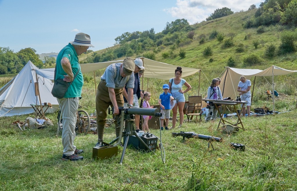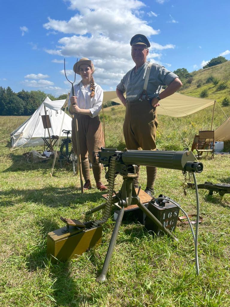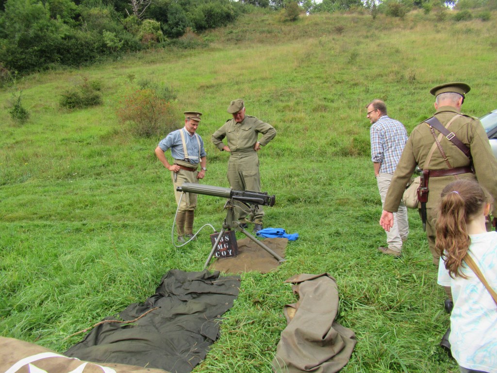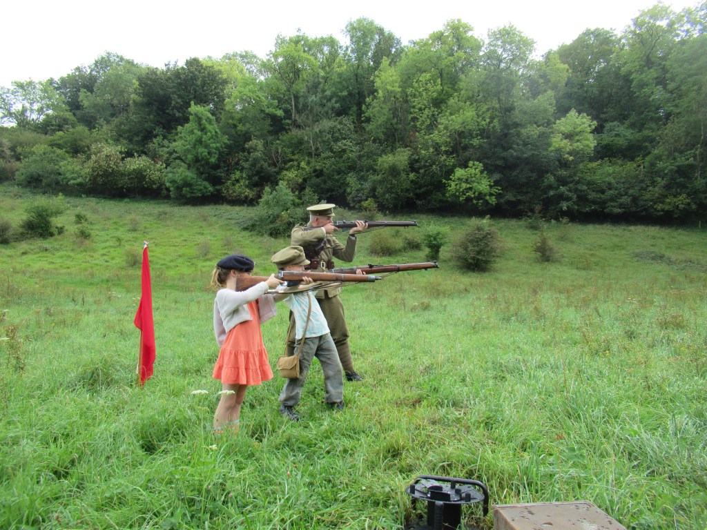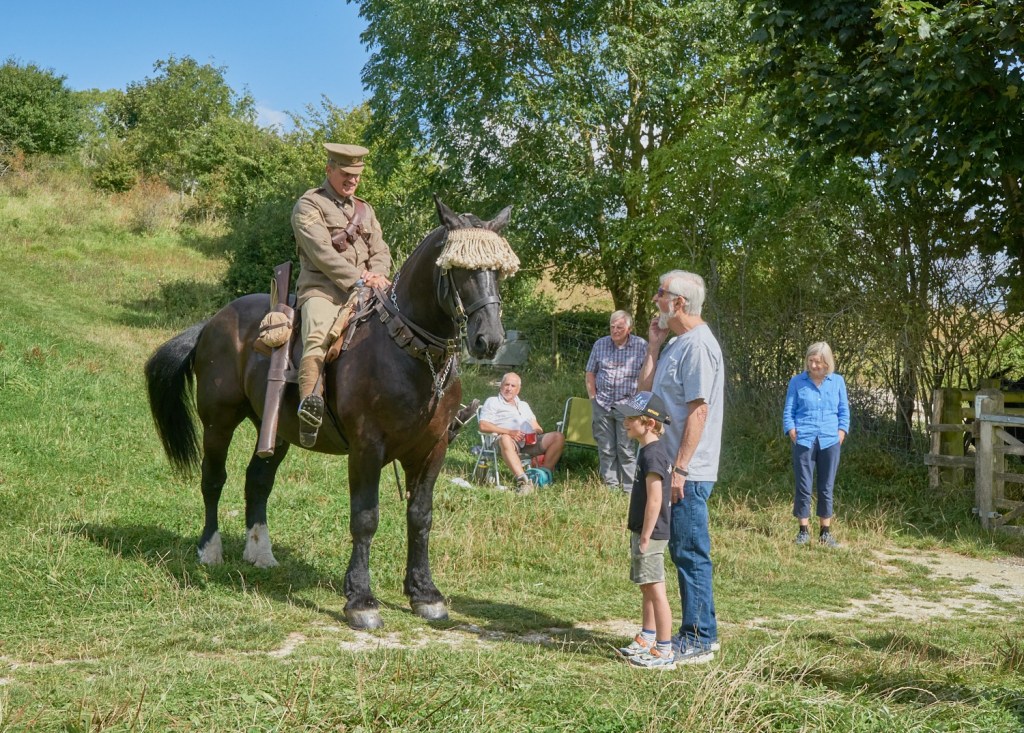 Since 2017 there has been an annual open day event at the rifle range. The event attempts to bring to life the history of the range and how it operated, with the inclusion of two moving target frames (with in-situ targets), deactivated weapons (of the type used on the range), and a collection of other items used on ranges. The event has got a little bigger in the last few years, with some living history, courtesy of Wayne Batchelor and Mark Randall and their excellent collection of equipment, including a Lewis and Vickers machine gun. Romeo the Warhorse even came to visit in 2024, with his owner Anthony. Mike Kelly and Jane Oxley have recently provided sustenance at the event, in the form of First and Second World War style refreshments, as well as interactive art projects for kids.